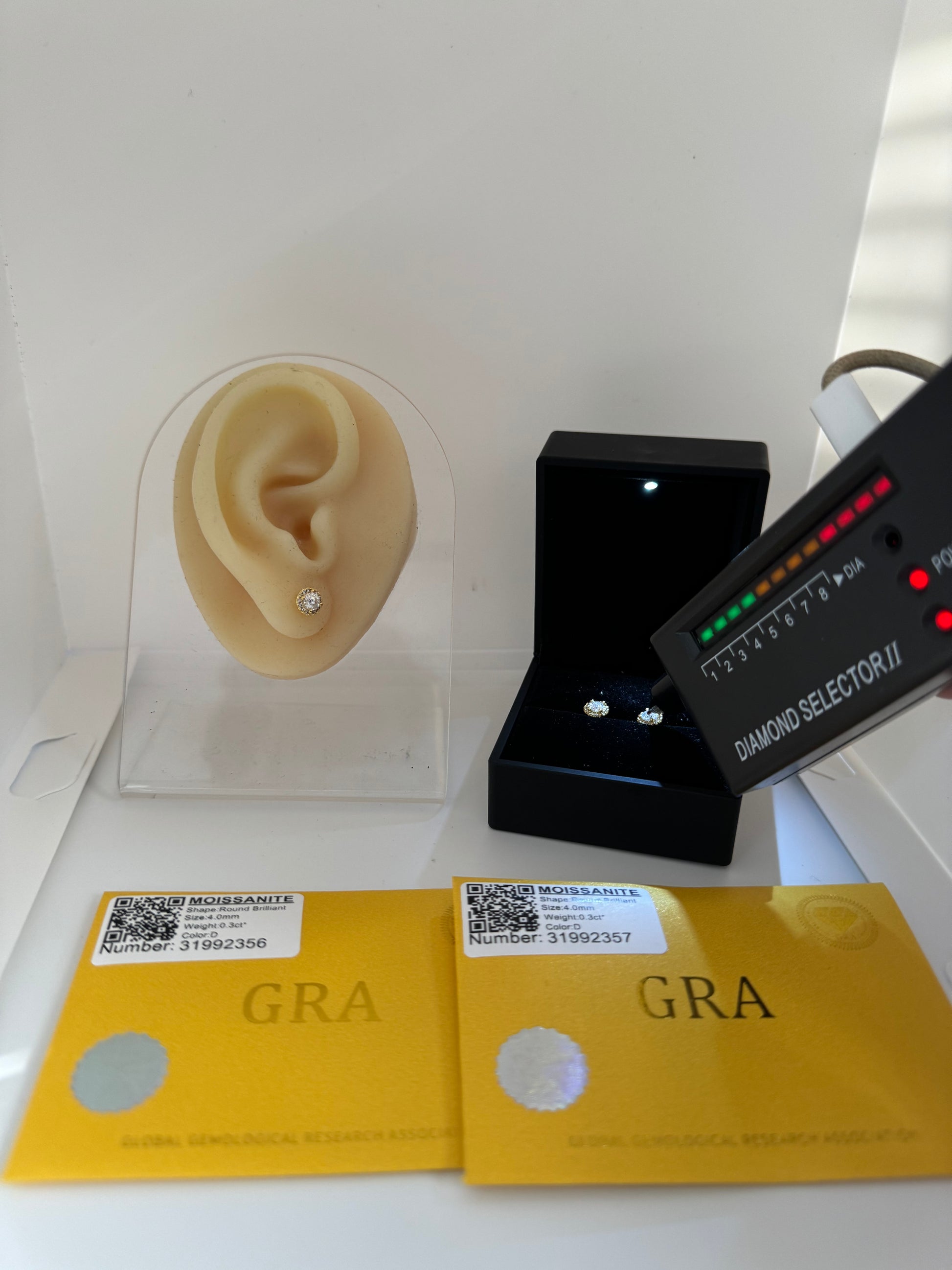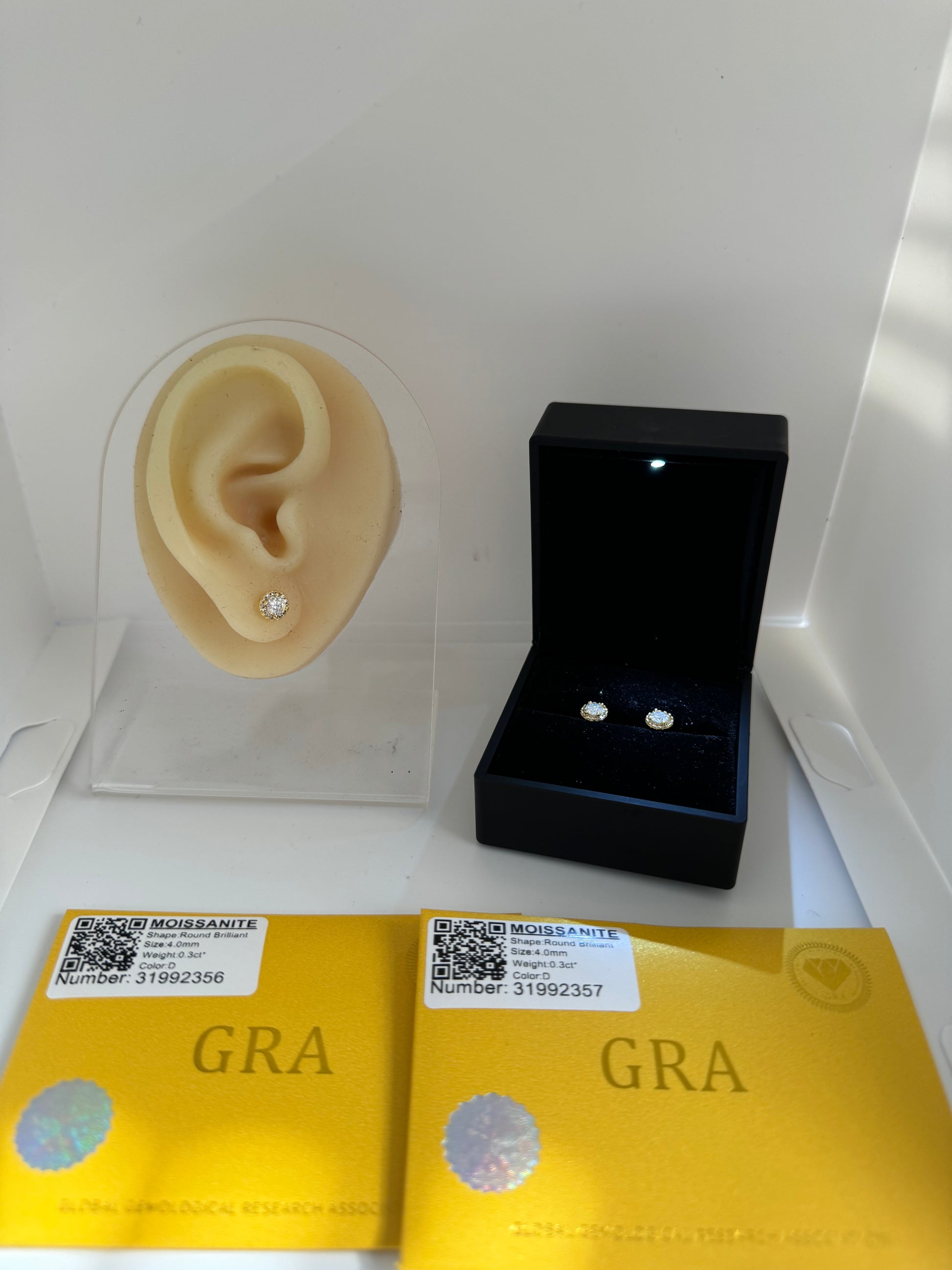 -Pantallas Moissanite Plata Fina Italiana 925 4mm con su Certificacion GRA (Valor de $80 en especial tienda)