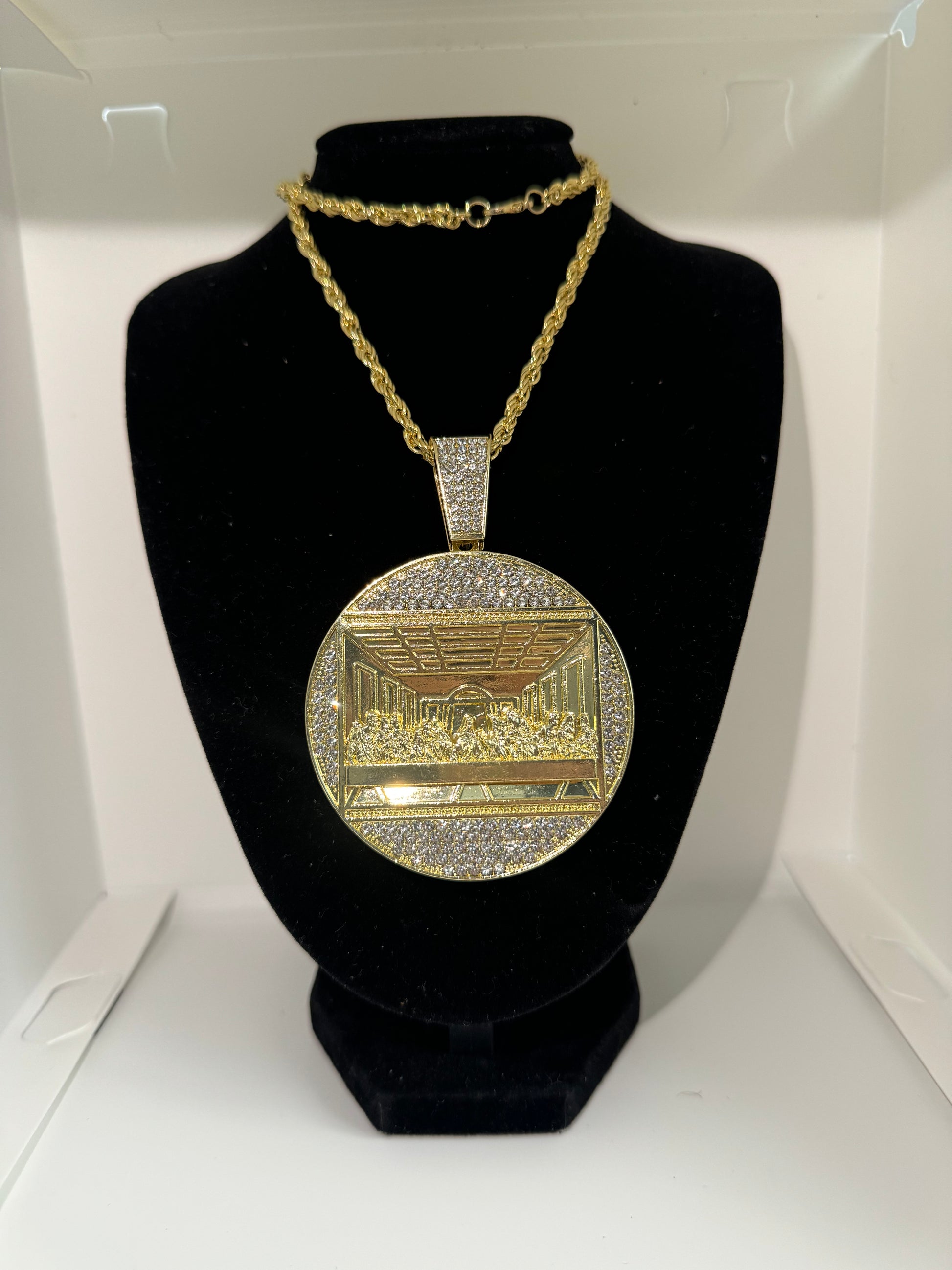 -Medallon Santa Cena 8cm x 6cm Acero Inoxidable con Zirconia (cadena incluida) (Valor de $40 en especial tienda)